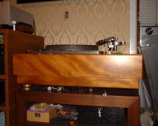| 桜の木のプレーヤーキャビネットに収められた、使い込まれた名機ガラード401にも、PB-BIG。 |