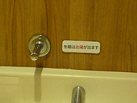 続いて洗面化粧台です。鏡の両サイドの内側に蛍光灯がはめ込まれた間接照明ですが初めて見ました。落ち着きがあって目に優しいです。洗った手の水分を吹き飛ばすエアータオルも化粧台毎に装備しているのもこれまた初めてです。お湯も出ます。