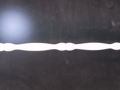 ミラクルサウンド・スクリーンのロクロ加工試作品が昨日1本出来上がりました。長さ2メートルもある物ですから、旋盤を回すと振動やブレが大きく、1本作るのに半日近くかかったそうです。そんなに時間がかかったのでは、工賃だけでも相当なものになり、とても商品化にはなりません。でも、そこはその道のプロですから、段取りを考え専用の治具を作って、1日5本を目標に工夫をしてみますと言う報告を得ました。 |