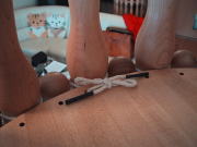- ダンボールか布を敷いた背の低いテーブルにマスト棒を載せます。