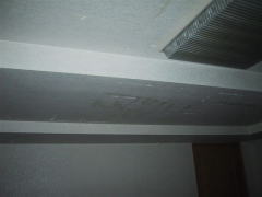 この写真からもお分かり頂けるでしょうけど、天井には幾多の張物をテストした苦心の跡が残ってあります。当然借家ですから出る時には補修しなければならないでしょうけど、当時はそんな事などそっちのけで何とか音を良くしようと暗中模索状態だったのでしょう。