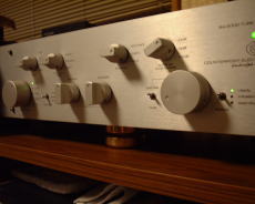 | 桜の木のプレーヤーキャビネットに収められた、使い込まれた名機ガラード401にも、PB-BIG。 |