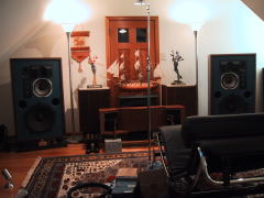 | 午前11時の約束の5分くらい前にTさんから携帯に電話が掛かってきました。「いまどちらですか?」、「はい、前原のインターを下りた所ですから、もうすぐ着きます」。Tさん宅に着くと美人でスラリとした奥さんのお出迎えです。 早速二階の方へ上がらして頂くと、あまりにも良い音になったので昨日は明け方の5時まで聴いてしまったそうです。そしてマッキントッシュのプリとパワーでは少し気になっていた音の膨らみ具合がプリをレビンソンの26に替えたら大変良いバランスになったんですよとおっしゃる。 | ||||||||