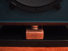 | そのスピーカーの足元についても、いま使っている鋳鉄とステンレスのインシュレーターでは、硬い物同士でお互いに負けまいとして、ベースの御影石と喧嘩状態になっているのです。それを理解していただく為に、ローゼンクランツのウッドブロック(WB-HM105-52,5)に交換してみます。 すると、木には程よい振動減衰能力があるのでスピーカーが伸び伸びと鳴るようになってきます。この場合はスピーカーの箱の木とウッドブロックの木ですから、柔らかい物同士という事になります。したがって、音はと言うと切れ味に欠ける緩い方向に行くのです。 | ||||||||