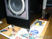 それでも強く勧める私の勢いに押されるようにして事が始まったのです。床やボードに傷をつけないように古雑誌の上に一旦スピーカーのスパイクを乗せ、二人で慎重にそのベースを外しに掛かります。