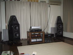 |  | 右チャンネルのパワーアンプの電源を切り、左のスピーカーの音だけで適正なスピ-カーの位置を探り出す作業をHさんにも分かるように聞くポイントを説明してから始めます。誰でも分かり易いのは人の声です。