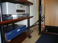 約束の時間に30分ほどの遅れで到着です。奥さんのお出迎えを受け、案内されたオーディオの置いてある部屋は20畳位はありそうなLDKです。大型プラズマテレビに100インチスクリーン、映像も楽しんでおられるようです。ゴールドムンドのCDプレーヤーと○○ミュージックの高価なユニヴァーサルプレーヤーが使い分けてあります。