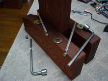 そんな私の挑発するような数字に期待感を感じたのでしょうか、すっかり上機嫌のK.Uさんは、スピーカーの加速度組み立てを希望されました。スタンドを全部バラバラにし、ボルトナットの方向チェックに始まり、ワッシャまでチェック、各部品の右、左の相性を見ながら組み替えします。また、スピーカーの下に敷いてある白い布も除去します。これは音にも悪いが、見た目にも美しくありません。