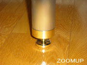 |  | 先ず目をつけた場所はトランスです。その下にあてがわれていた尖った銅製のインシュレーターを外してみました。その角度は30度くらいでしょうか、必要以上に尖った物はその先端部分が鳴いて力強い低音は出ません。さりとて、最初に着いているゴム製の足ではこれまた音は軟弱です。