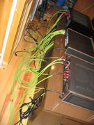 理想の場所に機材を配置した上で結線をし始めるとあるところで線の長さが足りない事態が生じてきました。今日は音出しをすることが出来ません。Hさんの明日の仕事にも差し支えるということで、今日のところはレイアウトを完了した時点で引き上げる事にしました。