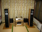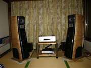 |  | 部屋に案内されて唖然としました。部屋の中央部でお互いのスピーカーが向き合うようにまるで大型ヘッドホン状態に置かれてあります。これでは間接音はほとんど耳に入りません。特にこのベリリュームツイーターは音がカチッとしていて、これぞオーディオの醍醐味といったキレのある高音を聞かせてくれます。幾分ホーンツイーターに似たところがあり、それはマニア心をくすぐる種類の音なのです。むしろ今は、カーオーディオの世界でブレークしております。この音は車に持って来いです!。