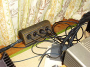 |  | 信号の流れの順に挿して下さいと、タップの使い方のノウハウをこのウェブ上で述べていますが、その教えをD.Hさん実行してくれています。ただ今日の場合はモノラルアンプですので普段とは勝手がちょっと違います。